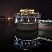 开州汉丰湖,来开州出差,住在学苑宾馆酒店,沿着宾馆门口的马路步行四、五分钟即到汉丰湖边,晚上这里有很多市民在此健走。汉丰湖是长江三峡工程建设而形成的世界上独具特色的人工湖,开县移民新城坐落在此湖畔,汉丰湖四山环抱、与城市和谐共生,拥有独特的