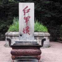红军山这里没有大门,不需要购票进去,爬上三百多级台阶后,可以看到红军烈士纪念碑,庄严而肃穆地树立,纪念碑依山而建,是人们纪念当年长征红军的地方。