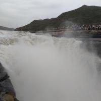 壶口瀑布确实很有气势走到正瀑布口的时候水汽扑面而来非常壮观去的时候临近汛期水量比较大黄河汹涌澎湃毕竟自然景观票价略贵有学生证才比较划得来山西和陕西都可以看到壶口瀑布黄河在此为界将两省分隔开虽然没去过山西个人认为陕西的观景角度更佳不过山西那边