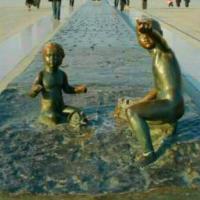 星海广场就是个大广场,有雕塑,有喷泉,看着还可以,除了在浴场玩海玩沙子,在城市巨书上攀爬,在海边漫步和骑车,观跨海大桥夜景,还有就是这个了:音乐喷泉形成的火树银花!