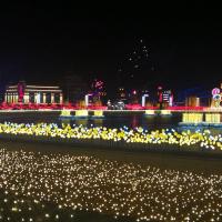星海广场大连非常有名的地标性广场。感觉大连的特点就是广场非常的多,星海广场是最有名的。可以来这边看看海哦,散散步。有音乐喷泉。晚上的效果特别棒。