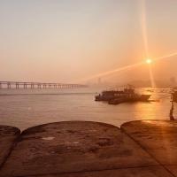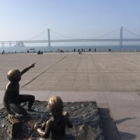 我们住在星海广场附近,下午去了星海广场,海边的落日,海鸥,跨海大桥景色很美,还有百年城雕,拍了好多照片,真是太美了。