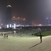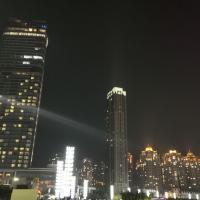 我是上去的,整个星海广场并没有灯光。旁边的空地大妈在跳舞。周边也有许多误乐项目。在海广场周边有许多高楼大厦。感觉是一般。