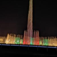 星海广场紧邻跨海大桥,旁边有星海公园儿童游乐场,每天晚上有音乐喷泉,时间为19:30-19:45和20:15-20:30两场,个人更喜欢东港的喷泉,感觉比这个壮观距离更近,看喷泉要在马路第二条线外观看。挺漂亮啊!