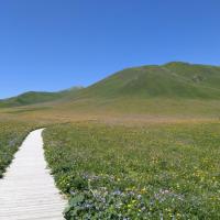 巩乃斯林场非常的干净,草地也非常的整洁,远远的山看过去非常的美丽,层峦叠翠高低落差,简直是美。简直是美不胜收,唯一的遗憾就是进去的时候人比较多,然后空间。空间也就有点窄了