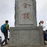 武功山的金顶不算高而且可以到达的路线有很多条登上金顶很辛苦只有这样你才能感受一览众山小上面的东西不多仅有一块石头被n多人包围着。。