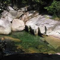 激情水世界一一石门山峡谷座落在皖、浙、赣三省交界的大鳙山下,与浙江钱江源共分山水。石门山峡谷紧邻篁岭景区,谷内飞瀑流泉、怪石嶙峋,峡谷幽深、峭壁如门,是一处纯原始的峡谷风光。景区分为户外拓展、英雄闯关、峡谷溯溪、情趣体验、科普文化教育等主题内容,是夏季戏水避暑绝好去处。