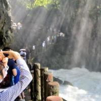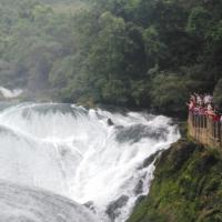 银链坠潭瀑布是黄果树景区里第二站,这里游客很多,但是到了天星湖,大部分团队就调头了,其实后面还有很多景点。天星洞,飞瀑桥之后就是银链坠潭,银链坠潭非常壮观,如果想照全景,可以再上几层栈道,那里可以俯瞰银链坠潭的全貌。