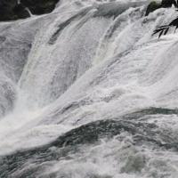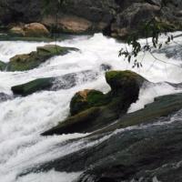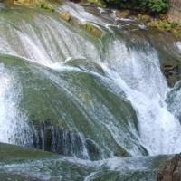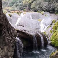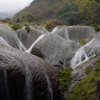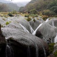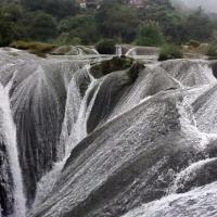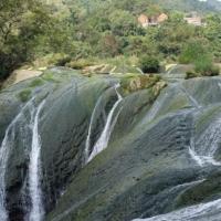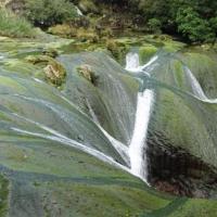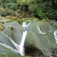 银链坠潭瀑布很漂亮,象无数颗珍珠,往水里跳一样,无数股的细流聚合在一起,形成湍急的水流,汇入潭中,4月份的时候,银链坠潭瀑布看的是石头和青苔,没水。