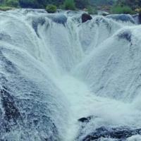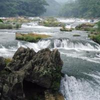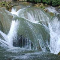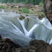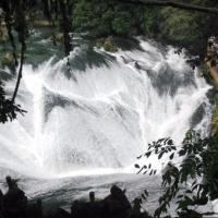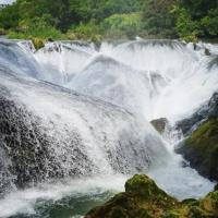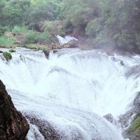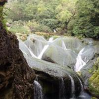 银链坠潭瀑布是黄果树瀑布天星桥景区中的一个景点,听这个名字就能知道,瀑布落下如同一颗颗珍珠落下,这个瀑布只有十余米高,上面成漏斗形,底部是槽状溶潭。但是就个人观点,瀑布壮观与否,完全取决去水流量,枯水期跟潮水期景色相差十万八千里,由于我当时