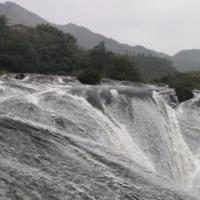 银链坠潭瀑布这个瀑布是属于天星桥景区内的,瀑布很壮观,水流从石头顶端下去之后就看起来像是一条一条的银色链子,声音丝丝缕缕非常好听,看起来像是水流从大片荷叶上坠落。
