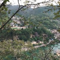 我们是从古城的小巷子里穿到后面的石屏山上去的,不是走景区入口。这边上山,楼梯陡峭,没有护栏,上到中间的四官殿买票,30元每人。四官殿的二楼可以看到古城这一侧的风景,一览无余。再往上就到古城垣了,再经过观景台,站在观景台上可以看山景又可以看河