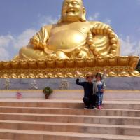 弥勒市的弥勒寺是一个扩建没有多久的,一个专供弥勒菩萨的寺庙,有新建的露天的弥勒菩萨,金光闪闪,号称有1999级台阶,吓人一大跳,游客都坐车上山了,实际台阶一半还不到。走台阶根本不累。