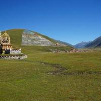 龙灯草原在甘孜州道孚县龙灯乡境内,分布于川藏公路两侧,坦荡宽阔,形如吉祥八宝图。当年格萨尔王曾在龙灯大草原安营扎寨,因而这片草原在藏语叫作“格萨尔通”,意为“格萨尔王征战过的草原”。然姑修行点中有藏区独一无二、世界罕见的108尊的大型欢喜佛塑像群,其规模宏大,造型独特;草原边缘还保留不少格萨尔王当年征战的遗迹。