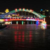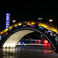 运河唐人街不夜城位于唐山市丰南区,占地面积很大,当地人称之为北方的秦淮河。这是一座后修建的免费开放式景点,依运河而建,确实是有一些仿秦淮河的风格建造但总感觉还是差了许多,加之冬天北方的寒冷天气使其略显人气不旺。但总体来说在北方能有这么一处景
