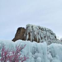 来到河北石家庄沕沕水生态风景区景区看冰瀑。冰瀑层层叠叠,气势磅礴。冰柱、冰笋、冰凌、冰花、星罗棋布,形态各异,贯穿整个景区。但是晚上太冷了,没有出去看冰灯。据说晚上的冰灯也超美,童话世界不夜城。