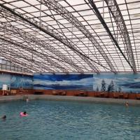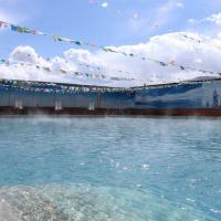 羊八井温泉就在羊八井地热电厂对面,远远就可以看到袅袅升腾的热气。泡温泉分室内游泳池、室外游泳池以及室内4个小温泉池,建设比较简陋,没有冲淋设施,但温泉货真价实。水质清澈,因为身在高原,没有枯叶小虫,极目远眺即可见雪山草原,即使在室内瓦蓝的蓝