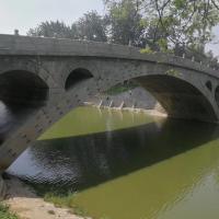 赵州桥又称安济桥,坐落在河北省赵县的洨河上,横跨在37米多宽的河面上,因桥体全部用石料建成,当地称做“大石桥”。建于隋朝开皇十一年至开皇十九年(公元591年-599年)之间,由著名匠师李春设计建造,距今已有1400多年的历史,是当今世界上现存最早保存最完整的古代单孔敞肩石拱桥。赵州桥是古代劳动人民智慧的结晶,开创了中国桥梁建造的崭新局面。它是中国第一石拱桥,在漫长的岁月中,虽然经过无数次洪水冲击、风吹雨打、冰雪风霜的侵蚀和8次地震的考验,却安然无恙,巍然挺立在洨河之上。