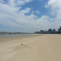 龙凤头海滨浴场,很大,沙滩很美,沙子颗粒很细,退潮后沙滩平面如镜,一望无际的海滩美不胜收,我去那天海水很冷,不能下海游泳有些遗憾,非常值得一游。