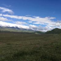 塔公草原两旁的山间云雾缭绕。从新都桥去向塔公草原,沿途美不胜收。当到了塔公草原,映入眼帘的是雅拉雪山,连绵的一长排,仿佛离我们好近。蓝天白云辉映下尤如仙境,太美了!