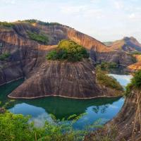 未建成景区,高椅岭很美!这里的丹霞与众不同,属低矮圆润绵延丘陵状,有水库碧水与丹霞相掩映,国内大多丹霞属于中晚期丹霞,颜色好而鲜艳,形状孤鹜而奇特,而高椅岭应属早期丹霞,颜色黝黑,外形圆润,山脊酷似龙形。没有门票,偶尔会收20元停车费。自驾