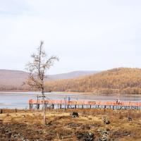阿尔山杜鹃湖,是火山爆发时,熔岩流堵塞河谷形成的湖泊。该湖状呈L型,东南为进水口,西南为出水口,上边连着松叶湖,下边衔着哈拉哈河。在阿尔山国家森林公园里面,里面可乘坐摆渡车到达。