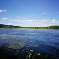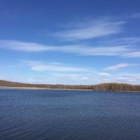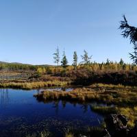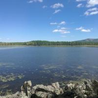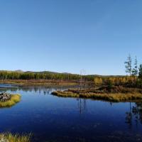 阿尔山国家森林公园阿尔山杜鹃湖景色宜人,空气清新。只是湖边风大气温低,居然把还有30[%]电量的手机给冻没电了,直接给关机了。