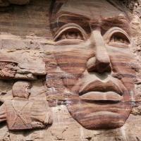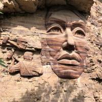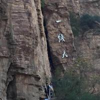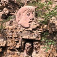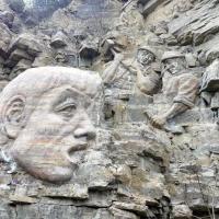 在红旗渠渠道岸边的山崖上,有一组雕塑群吸引着过往的游人。这是一组人物雕塑,雕塑主要展示的是人物面部形象的刻划,每个雕塑的面部都透露出一种坚毅的眼神,表现了当年林县人民为了实现重新安排林县河山的豪情壮志,不怕牺牲,战天斗地,排除万难的大无畏革