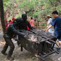 当你行走在红旗渠的渠堤上时,是否注意到那几个塑像?一个是用一盆水作为渠道设计施工的水平仪,另一个是推车送材料到工地。虽然这是两个普通的塑像,但足以说明当年修建红旗渠时的艰辛,林州人民靠自己的双手和大脑以及非常简陋的工具,劈开太行山,建成了世