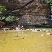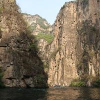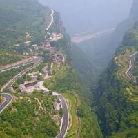 太行大峡谷景区有着典型的北方山水特色,除了林海和瀑布,还处处可见刀削斧劈的悬崖,可以欣赏到雄奇的北国风光。整个景区分为三大区域:桃花谷、王相岩和太极冰山,此外还有桃花谷附近的太行天路可以游玩。景区有桃花谷和王相岩两个入口。三个景区中,桃花谷的“水景”最美,谷内遍布溪水汇集成的瀑布,从山顶飞流而下汇成一个个水潭;王相岩区域内的“山景”最佳,有开凿在山崖中的栈道、建在山崖上的80米高的筒梯等