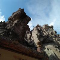盘吉尔怪石林位于托克逊盘吉尔塔克山脊与山坡,东南距托克逊县城55公里,有公路可通至附近。是由溶蚀和风蚀作用形成的奇特的峰林地貌山岩或似羚羊翘首、天马行空,或似猛兽鬼怪,面目狰狞,或似云朵变幻,壮观有趣。岩石多为石炭纪火山岩和角砾凝灰岩,颜色以青灰色、褐红色多见。