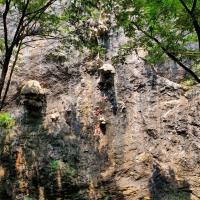 整个景区分南沟和西沟两大区,南沟飞瀑流泉,突出"水";西沟秀竹茂林,突出"幽"。主要景观有:竹海、水帘仙宫、菩提神树、飞瀑流泉、高峡平湖、蘑菇崖、听涛岭等一百多个景点。