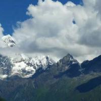 被四姑娘山的神秘诱惑了很久才得以终于成行。微雨中进山,凉爽清新。进山后一直往四姑娘山跟前游走,虽然始终有微云缭绕,但是高山仰止的神秘雪山还是让人很欣喜