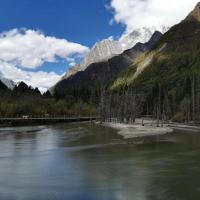 我们是四月初去的四姑娘山,可能是我们的运气好,住在长坪沟附近酒店,当天下午到的,第二天早上起来一看惊讶了,白茫茫一片,夜里下了场大雪,看到了少有的景色,因为温度较高,中午去的就没看到那样的景色,一个字,美!