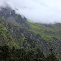 海螺沟景色美不胜收,因为来之前下了半个月的雪,山上积雪严重,我们的车不是四驱,爬不上去了,等着山下的朋友送来防滑链,耽误了时间,等到了三号营地,山上已经起雾了,没法上山一睹贡嘎雪山的壮观了,只有再找机会来!不过一路的景色已经美不胜收!