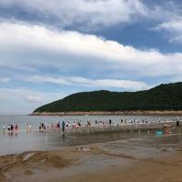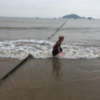 夏天一放假就带着小朋友去象山的松兰山海滨浴场玩耍。从杭州开车到象山,三小时左右的车程,就可以看到大海和沙滩,简直是一个很不错的度假之地。松兰山的沙滩沙子比较细腻,很适合小朋友们来玩。小朋友可以换上泳衣,在海边游泳,也可以躺在沙滩上玩沙子。海