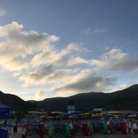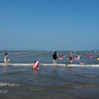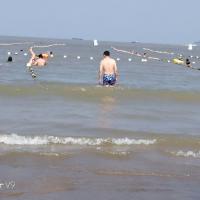 松兰山海滨浴场不错,风景很好。第一次下海,第一次在海里游泳,感觉很不错。松兰山海滨浴场分为东沙和南沙两个沙滩,东沙比较大南沙很小,只能在规定的区域内游泳,前几天台风浪比较大,东沙的游乐项目比较多,坐个太阳伞也是要收费的,海边太阳下防晒要做好