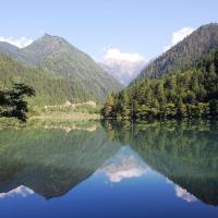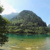 镜海是九寨沟景区著名景观之一,只所以叫镜海,大概是因为这片海子碧蓝平静透澈犹如一面镜子,把周围山峰树木倒映在海子中,美仑美奂,令人叫绝。