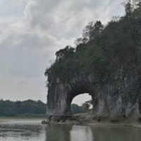 象鼻山坐落在桂林市中心的漓江与桃花江汇流处,形似一头鼻子伸进漓江饮水的巨象,象鼻和象腿之间是面积约一百五十平米的圆洞,江水穿洞而过,如明月浮水,据说这里是桂林的标志,第二次来了,很好玩!