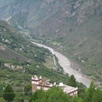 甲居藏寨就在县城的边上,沿大渡河向山上走,行车路比较险,甲居藏寨的建筑物很有特色,也很漂亮,可以进去参观,一层为养动物的,二层为日常生活用,三层是小姐的房子。