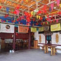 川藏行第2天的上午去了传说中的甲居藏寨,门票50元。在售票处站着一名美女导游,价格80元,考虑之后我们一车4人还是请了,不然都不知怎么游玩。之后导游还带着我们去了她家参观,给我们喝奶茶,带我们采了她家的苹果。一上午就这么愉快的过去了,藏寨还