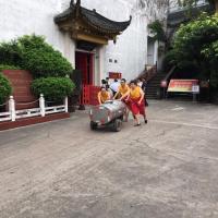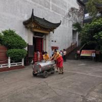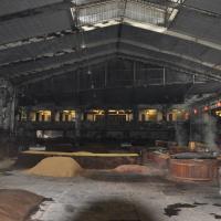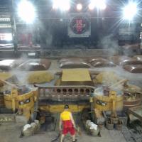 整个泸州国宝窖池景区并不大,刚到景点门口,便闻到一股浓重的酱香味,就是那种大酱的味道,讲解员说那是因为酒曲发酵的原因,进入后,发现是园林式的建筑风格,最远处是整个酿酒过程的石刻画。进入窖池观赏区后,可以看到整个老窖酿酒的过程,有工人师傅们正