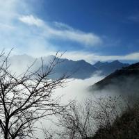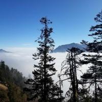 第三次路过巴郎山了,现在的路非常好走。想想之前的烂路简直让人怀疑人生。从耿达过来后,渐渐的漂亮起来,一路的流水红叶艳阳。走走停停,不由得让时间慢了起来,随着海拔的升高,风景也在变换,云海和雪山也显现在了眼前。日落到了猫鼻梁后,日照金山。弄个