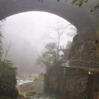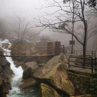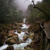 大鄣山卧龙谷景区是婺源北线的一个景点。冬天淡季的时候过去,又遇上了淅淅沥沥的冬雨。因为人太少,缆车没有开放,我和小伙伴两个人步行上山。深入峡谷,溯溪而上,如入仙境,一片片薄纱似幻如烟朦胧的雾气,让山水顿时灵动又神秘。怕导游等太久,我们速度比