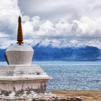 玛旁雍措在西藏阿里地区普兰县城东35公里、岗仁波齐峰之南。其周围自然风景非常美丽,自古以来佛教信徒都把它看作是圣地“世界中心”,是中国蓄水量第二大的天然淡水湖、湖水透明度最大的淡水湖,藏地所称三大“神湖”之一。它也是亚洲四大河流的发源地。