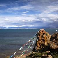 到了玛旁雍错,碧蓝的湖面波光粼粼,五色的经幡风中猎猎,圣洁的雪山巍峨庄严,一切都那么神圣和美丽。