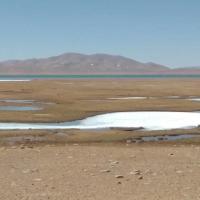 措那湖是怒江之源,位于念青唐古拉山和昆仑山山脉之间,是世界上海拔最高的淡水湖。湖水的颜色浓淡不一,或湛蓝或碧绿,在阳光下闪闪发光,尚未完全解冻的湖泊像一个出浴的美人。