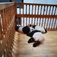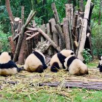 很可爱的一群小家伙,进去非常方便,刷身份证就能进成都大熊猫繁育研究基地。熊猫基地好大,不过我们去的时候最大的熊猫宝宝也已经8个多月了,长出了黑白相间的花纹,蜷成一团在睡觉,可爱。还看到了打架接力
