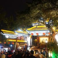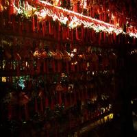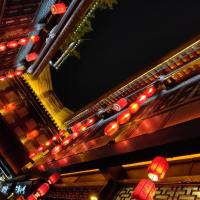在成都的最后一个晚上,留给了锦里。人们都喜欢在夜晚的时候来到锦里,因为夜下的锦里,无疑是璀璨的。街旁店铺里的各色灯光,交织着路边随处可见的大红灯笼的光色,所有的一切,似乎都变得流光溢彩起来了。夜下的锦里最为热闹。锦里在武侯祠正门边有一个入口