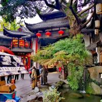 特色鲜明的旅游景点锦里古街,就是平时去游人太多。建议住宿选择在锦里附近,既方便解决吃饭问题,又方便欣赏锦里白天、晚上不同的风景。客栈、饭店、小吃很多,据说大都是游客在那里吃,当地人去西安南路、文殊院附近吃,味道更地道。